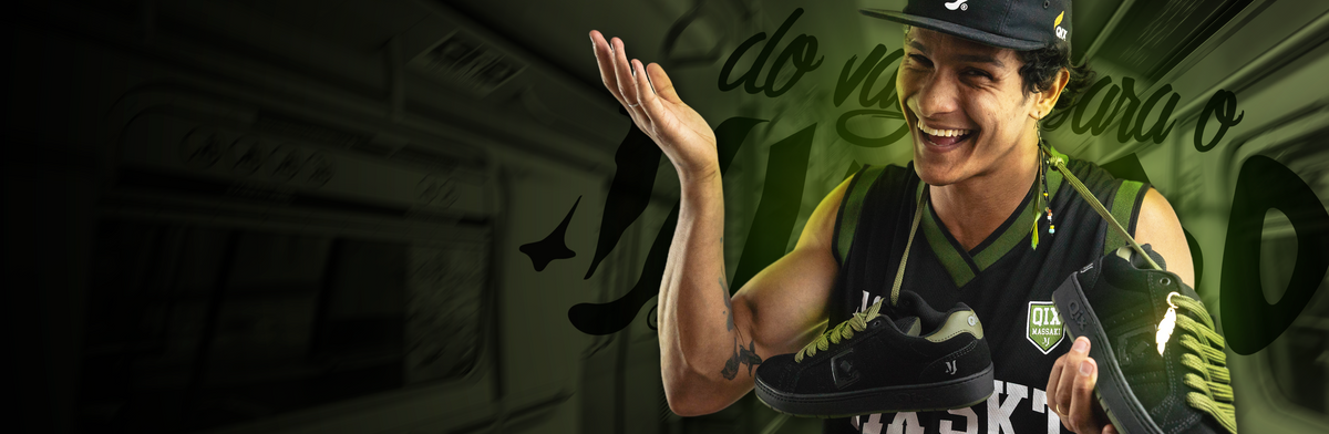 A QIX sempre esteve conectada com quem faz a cultura pulsar de verdade. Por isso, essa collab nasce de um encontro potente: a essência do skate com a poesia viva das ruas de São Paulo. Massaki, conhecido pelas performances nos vagões e por transformar o cotidiano em arte, chega pra somar ao DNA QIX.