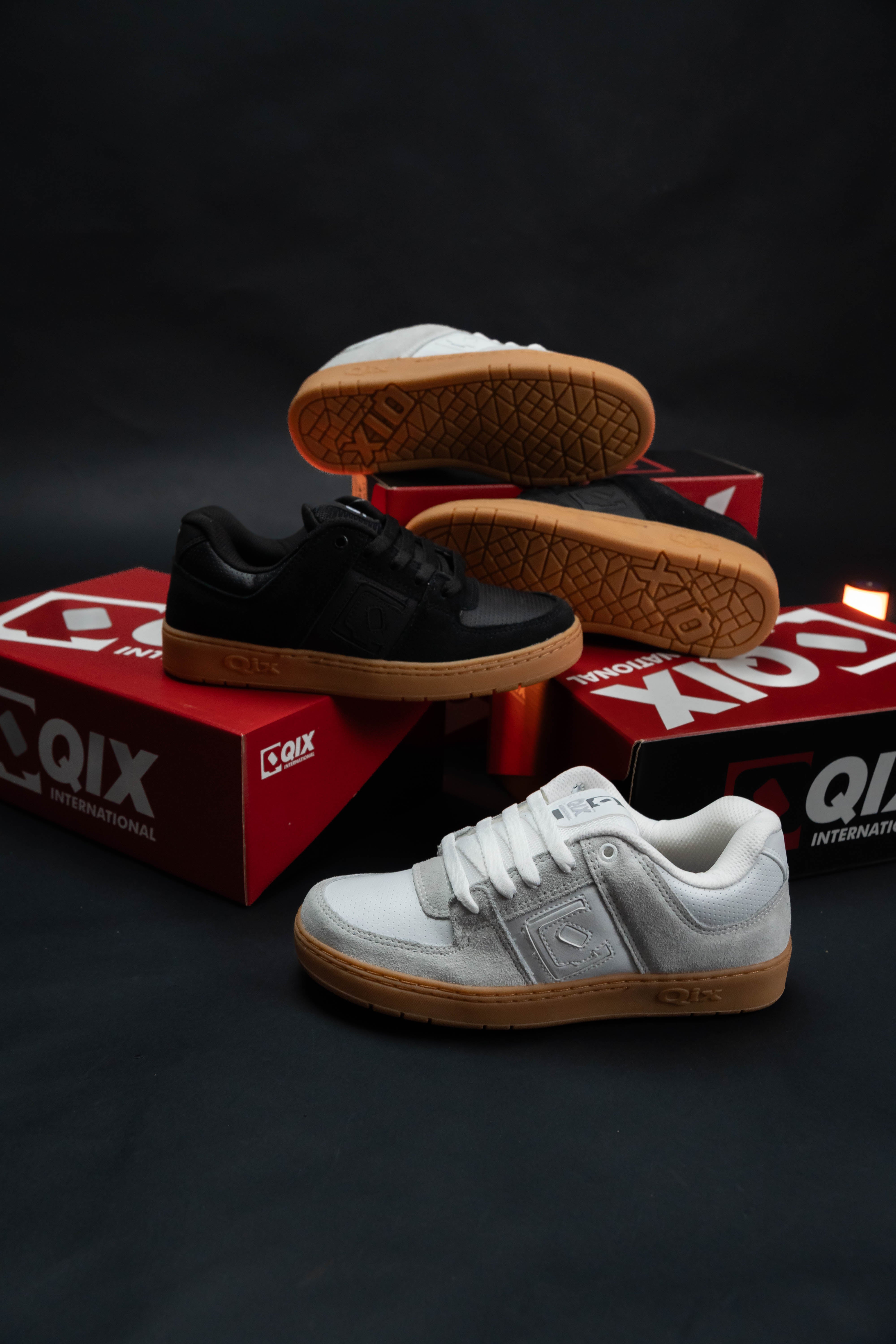 Cabedal confeccionado em courino. Apresenta o logotipo da marca na lateral, calcanhar e palmilha. Possui etiqueta na parte interna da língua. Palmilha em EVA antibacteriana. Solado em borracha blaqueado (costura dupla no solado) garantindo assim maior durabilidade e resistência que só a Qix pode oferecer.